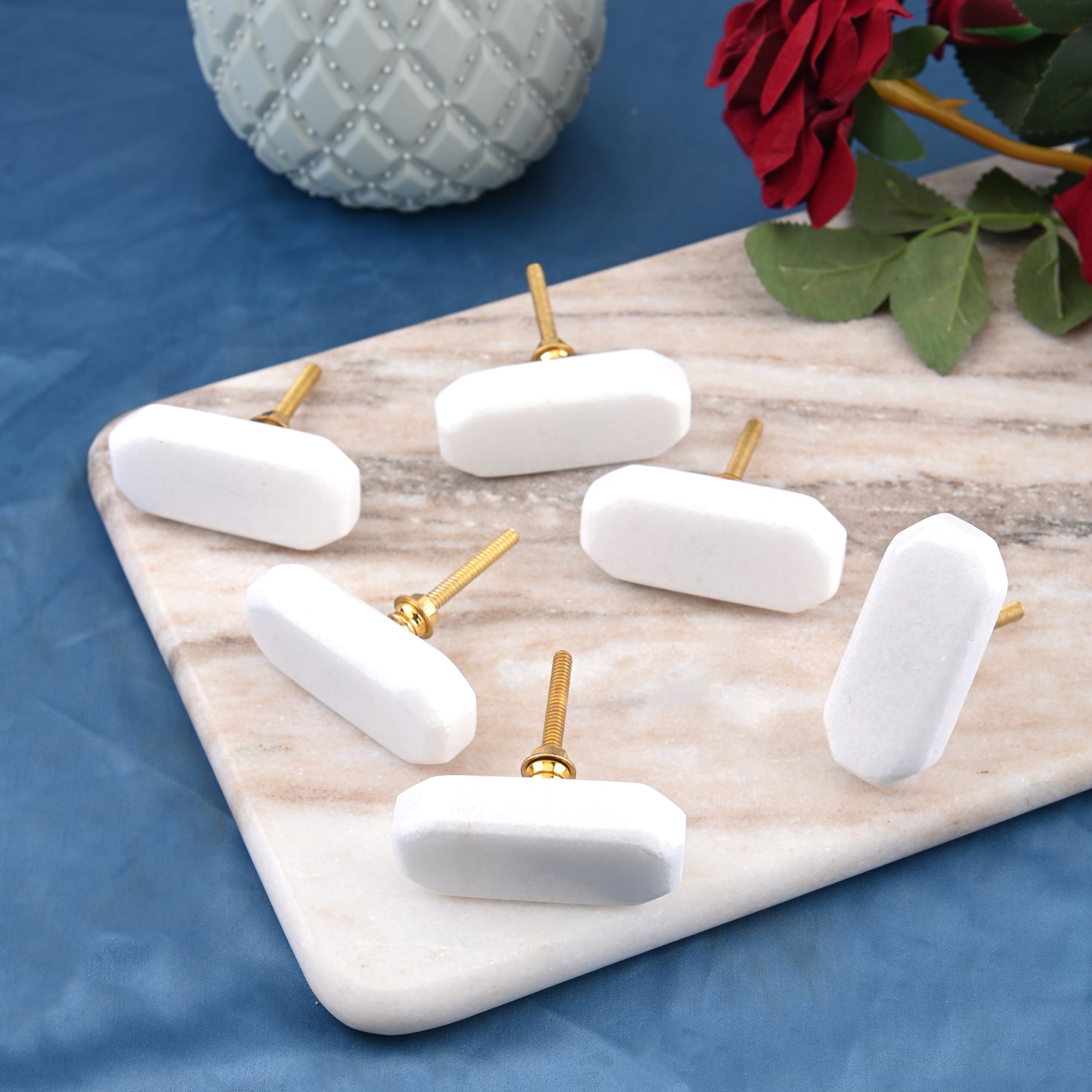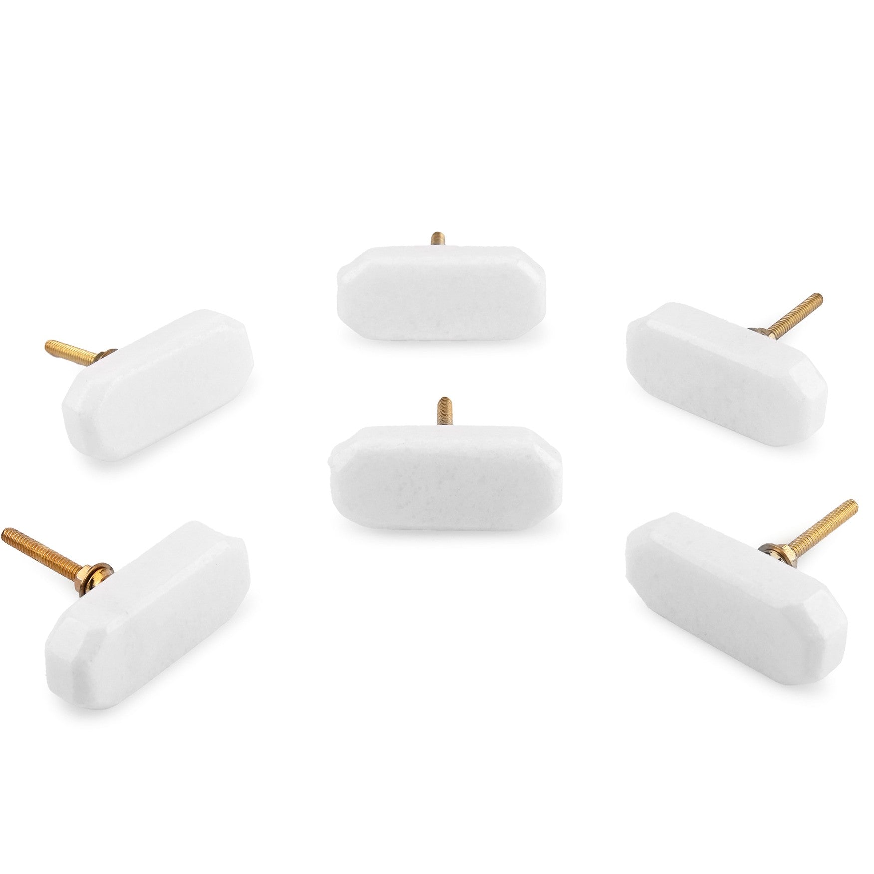 White Marble rectangle cut knob ( set of 6)