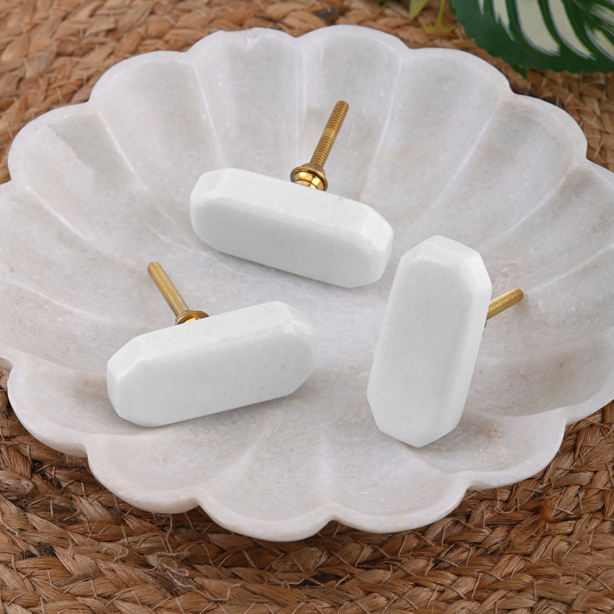 A stone drawer knob available in  white Marble  brass hardware.  An elegant addition for all cupboard doors and drawers.