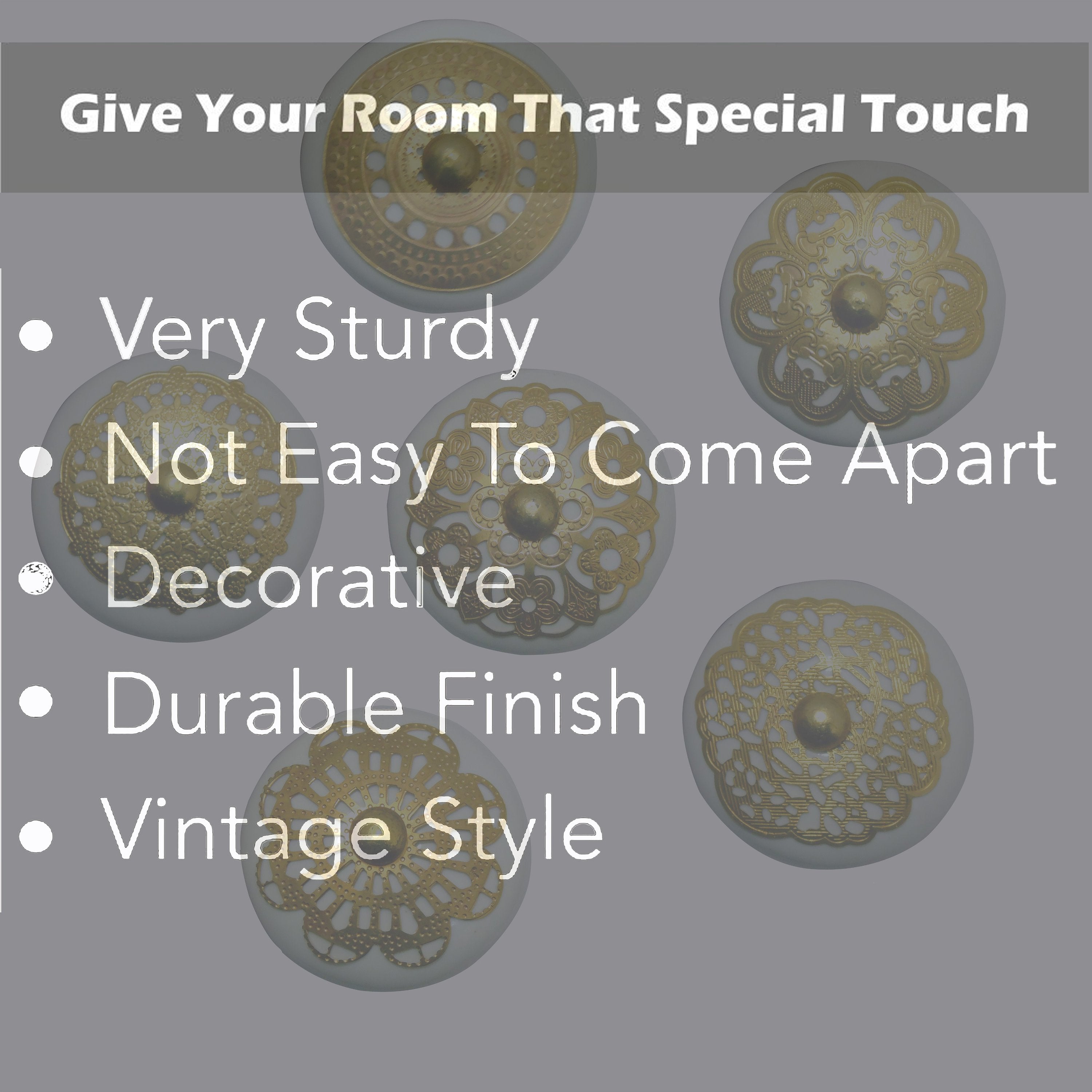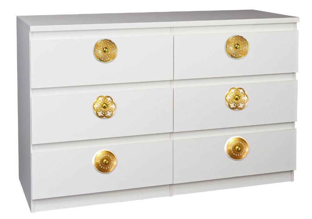 These are beautiful handcrafted set of 6 Pieces Gold Ceramic Knobs . These are of Great Quality Hand made cabinet Pulls makes your Kitchen , Home Office very unique. We make our Knobs using high class raw material than other Sellers . Our quality controllers are very strict in quality control of each product. Look wise These knobs are very pretty. These Knobs always supplied with Standard Size Hardware and plastic washers .