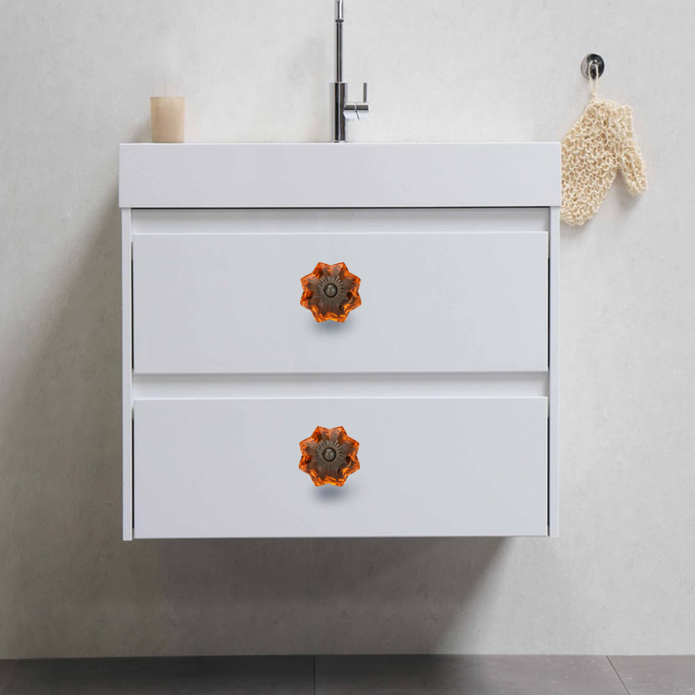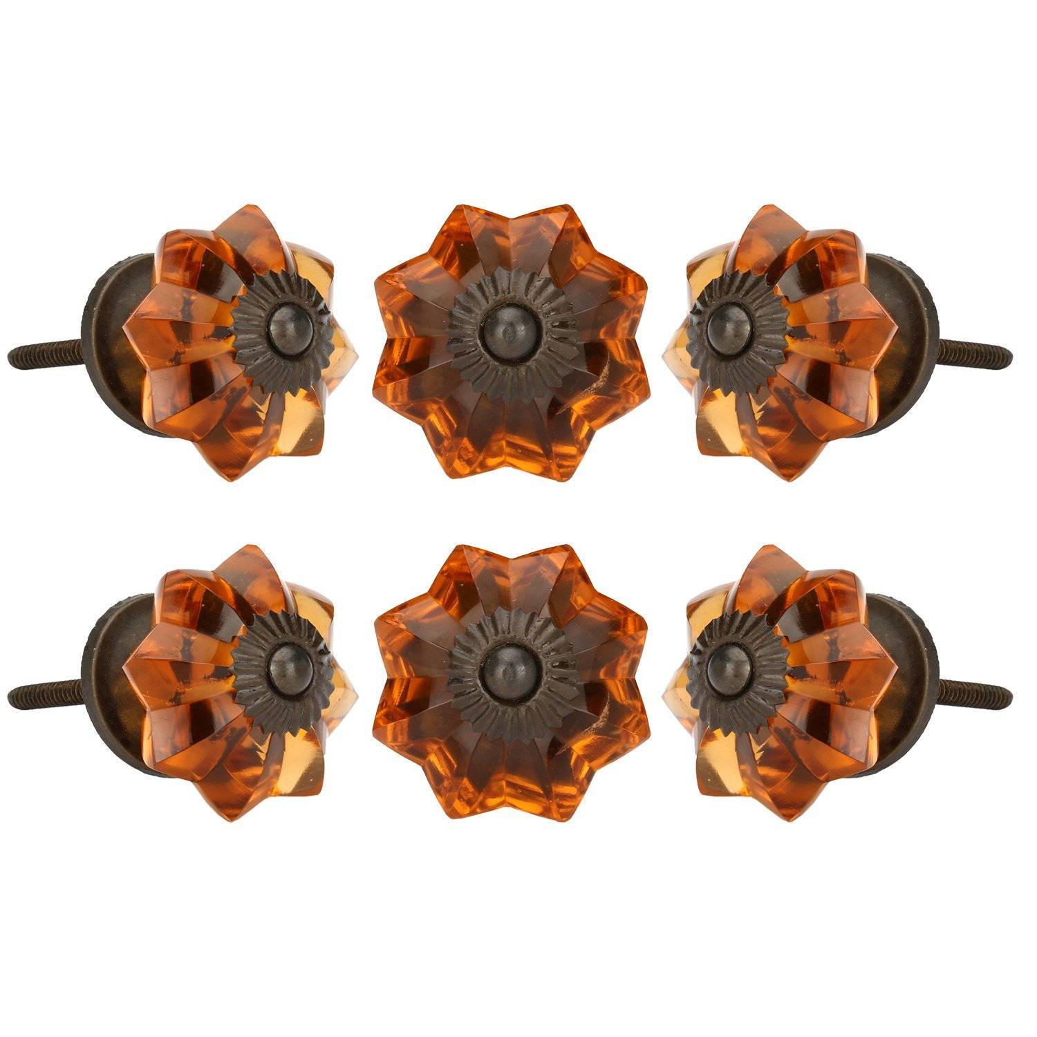 These are beautiful handcrafted set of 6 Pieces Antique Amber Glass drawer Knobs . These are of Great Quality Hand made cabinet Pulls makes your Kitchen , Home Office very unique. We make our cabinet Knobs using high class raw material than other Sellers . Our quality controllers are very strict in quality control of each product. Look wise These knobs are very pretty. These drawer pulls always supplied with Standard Size Hardware and plastic washers . Installation is very easy , Just drill an 1/8 " hole in the cabinet door and tighten the nut with a spanner.