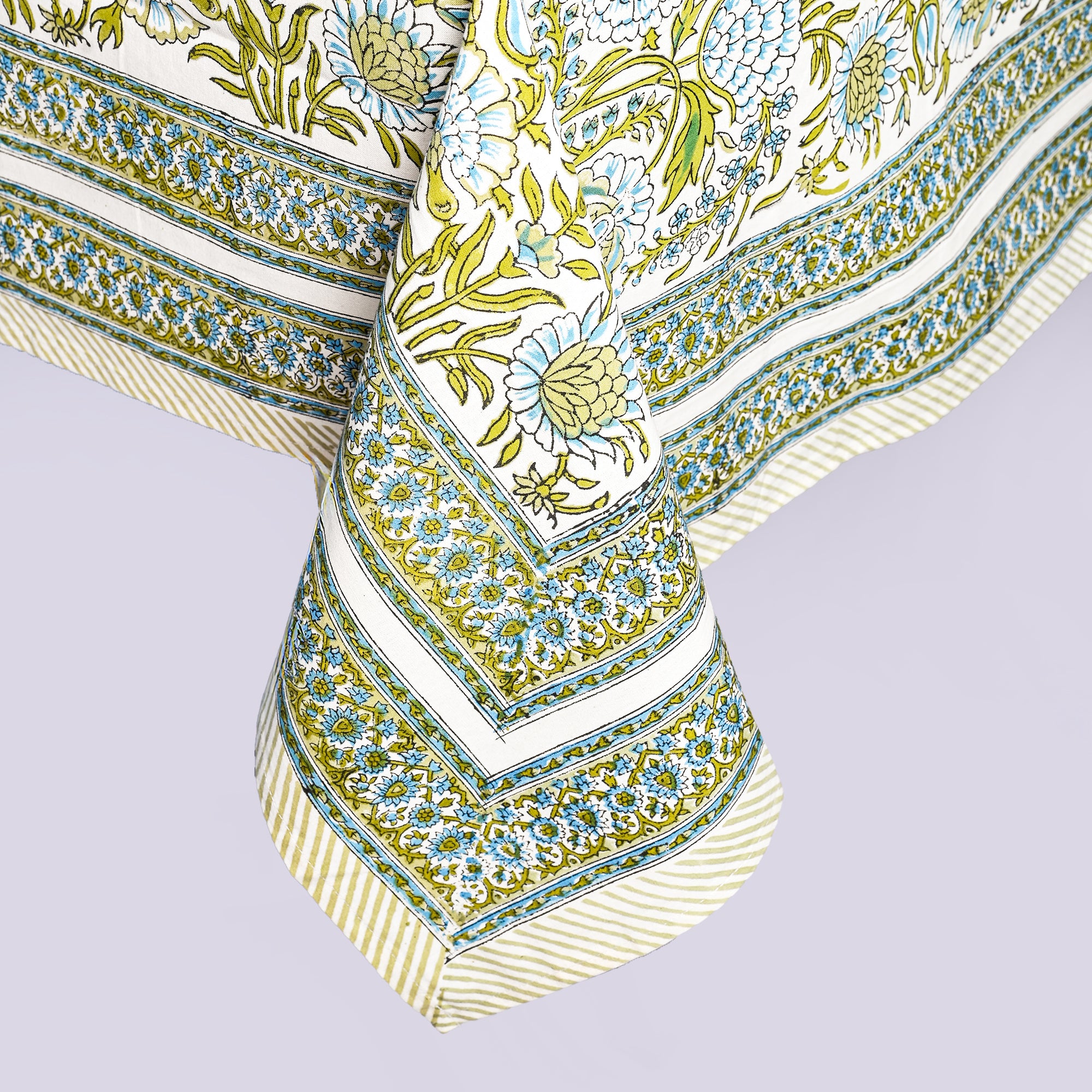 HAND BLOCK PRINTED ARTISAN CRAFTSMANSHIP – Perilla Home multicolor cotton tablecloth features intricate floral designs inspired by French Provencal and traditional Indian art. Each piece is hand-printed using carved wooden blocks, making every tablecloth a one-of-a-kind creation.