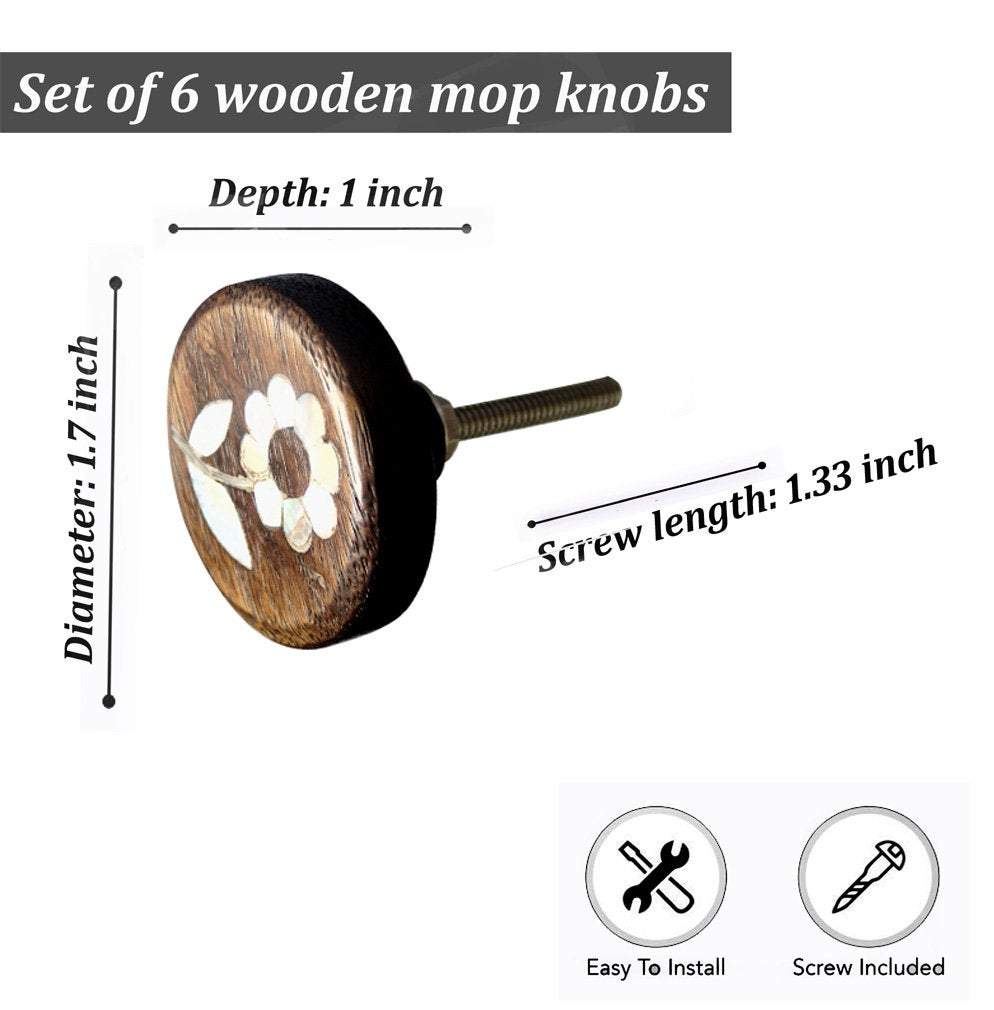 These are beautiful handcrafted set of 6 Pieces Round Mother Of Pearl Daisy Flower Wooden Knob. These are of Great Quality Hand made cabinet Pulls makes your Kitchen , Home Office very unique. We make our Knobs using high class raw material than other Sellers . Our quality controllers are very strict in quality control of each product. Look wise These knobs are very pretty. These Knobs always supplied with Standard Size Hardware and plastic washers .