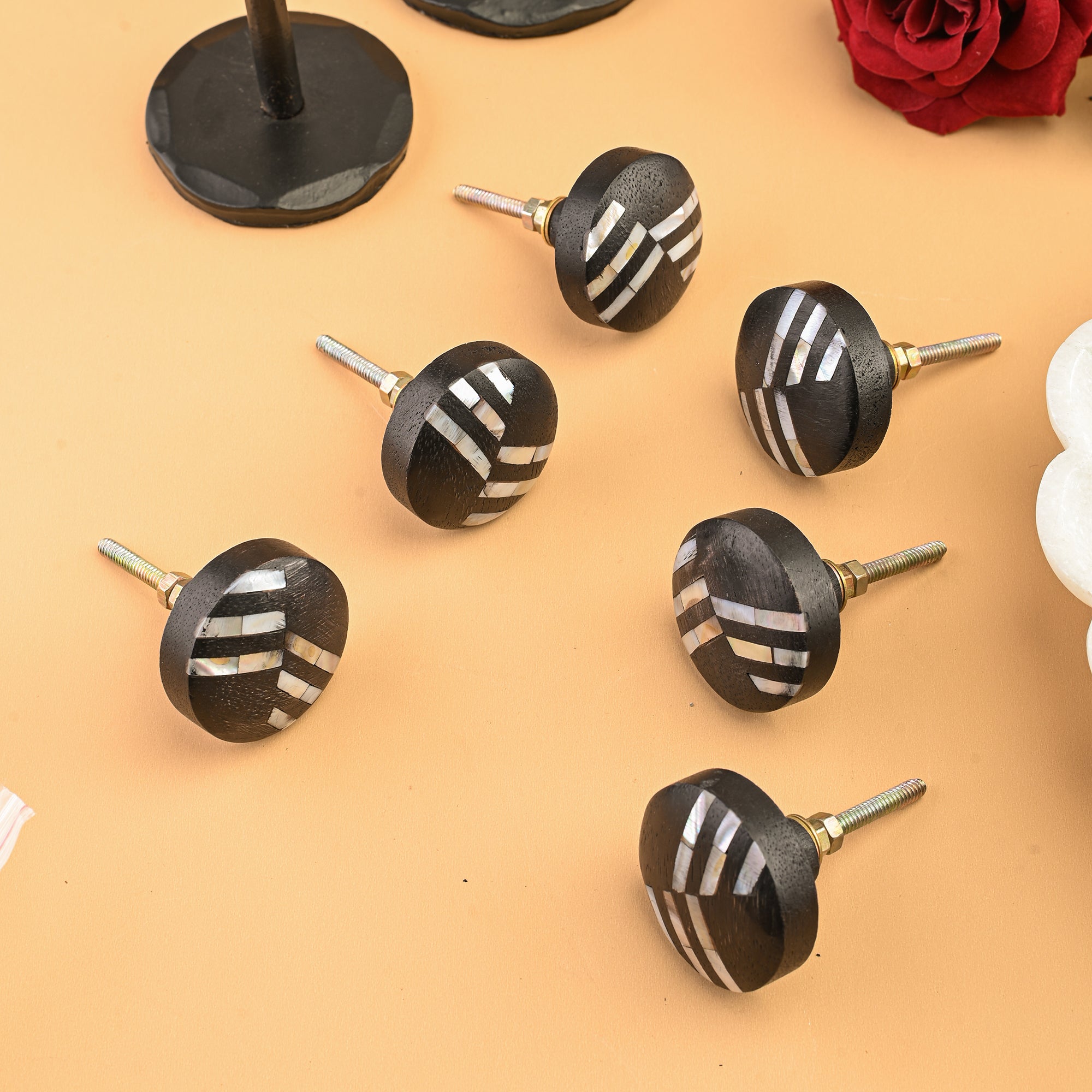 Set of 6 Renaksh Wooden Knob Mother of Pearl