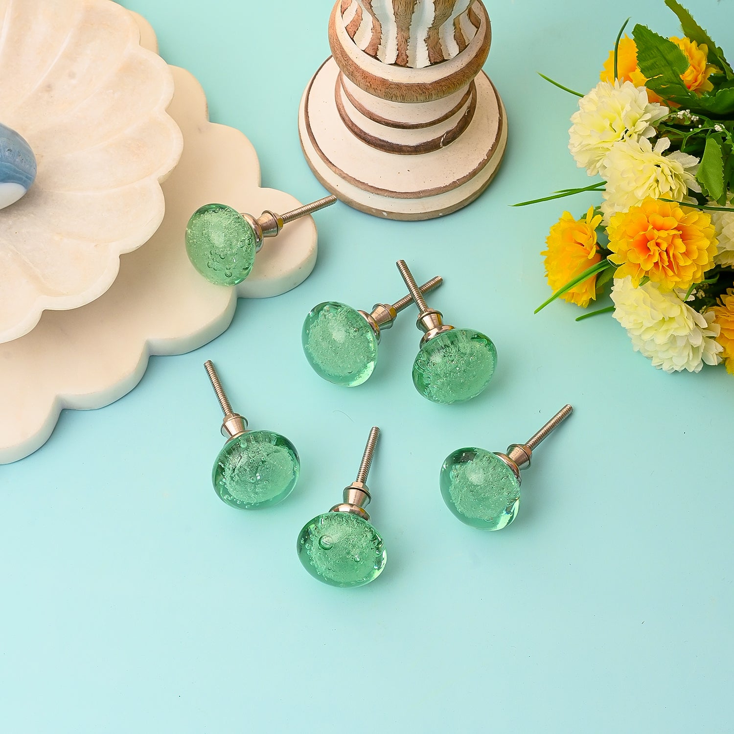 These are beautiful handcrafted set of 6 Pieces Light Green Glass Knobs . These are of Great Quality Hand made cabinet Pulls makes your Kitchen , Home Office very unique. We make our Knobs using high class raw material than other Sellers . Our quality controllers are very strict in quality control of each product. Look wise These knobs are very pretty. These Knobs always supplied with Standard Size Hardware and plastic washers .