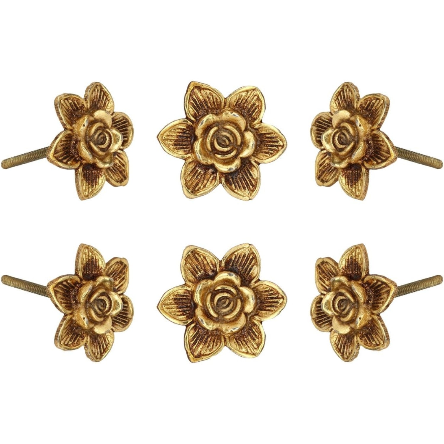 Set Of Six Gold Flower Knobs