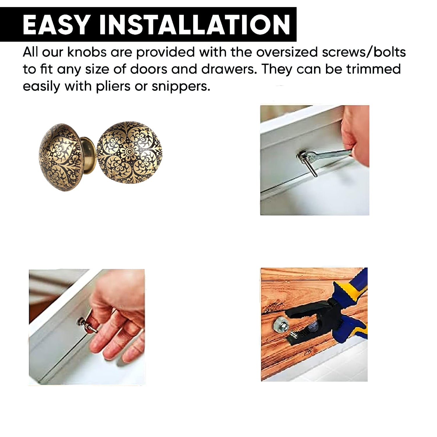 • Beautifully handcrafted knobs. Decorative and matches with all home décor themes. A great style knob to give your home that special touch.