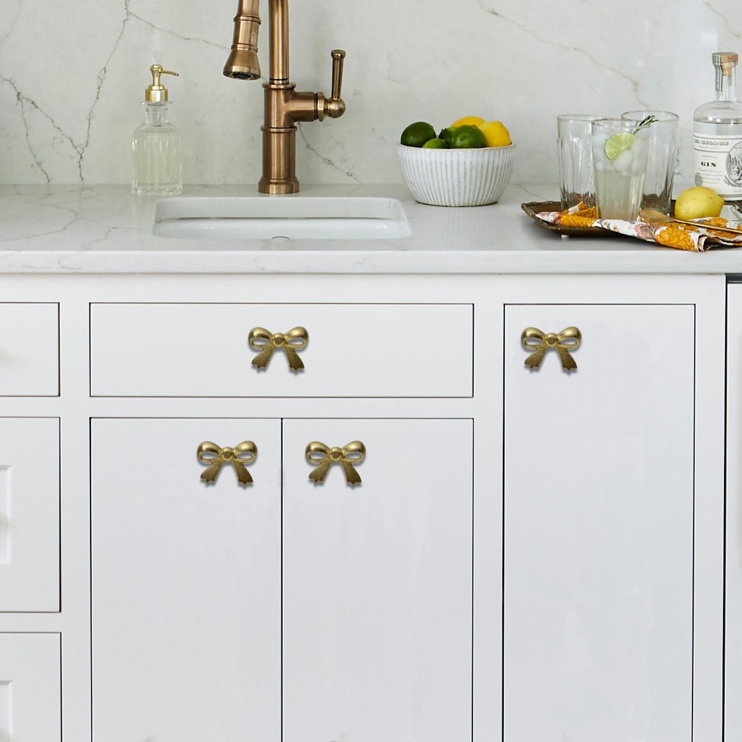 Set Of Six Brass Ribbon Tie Bow Knobs