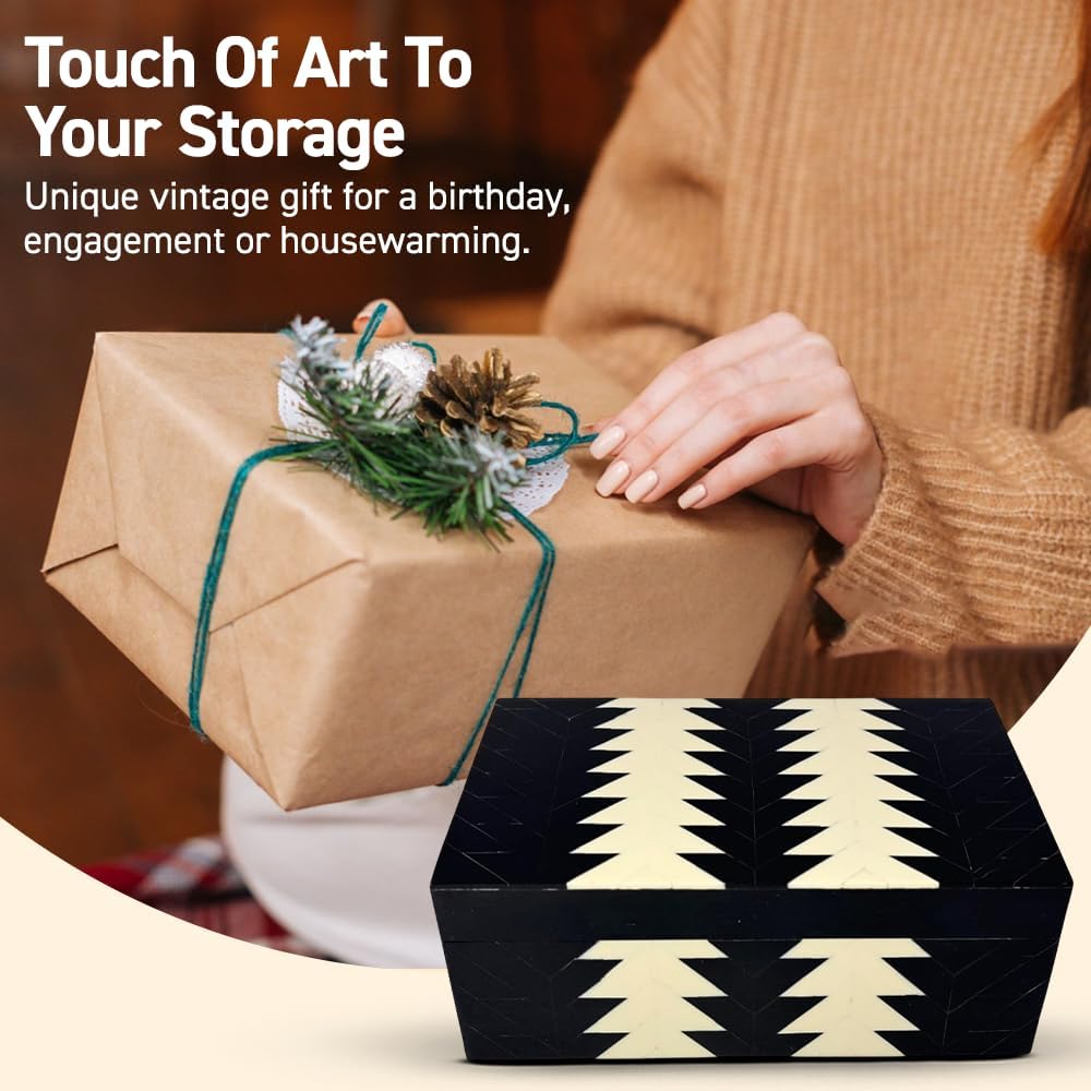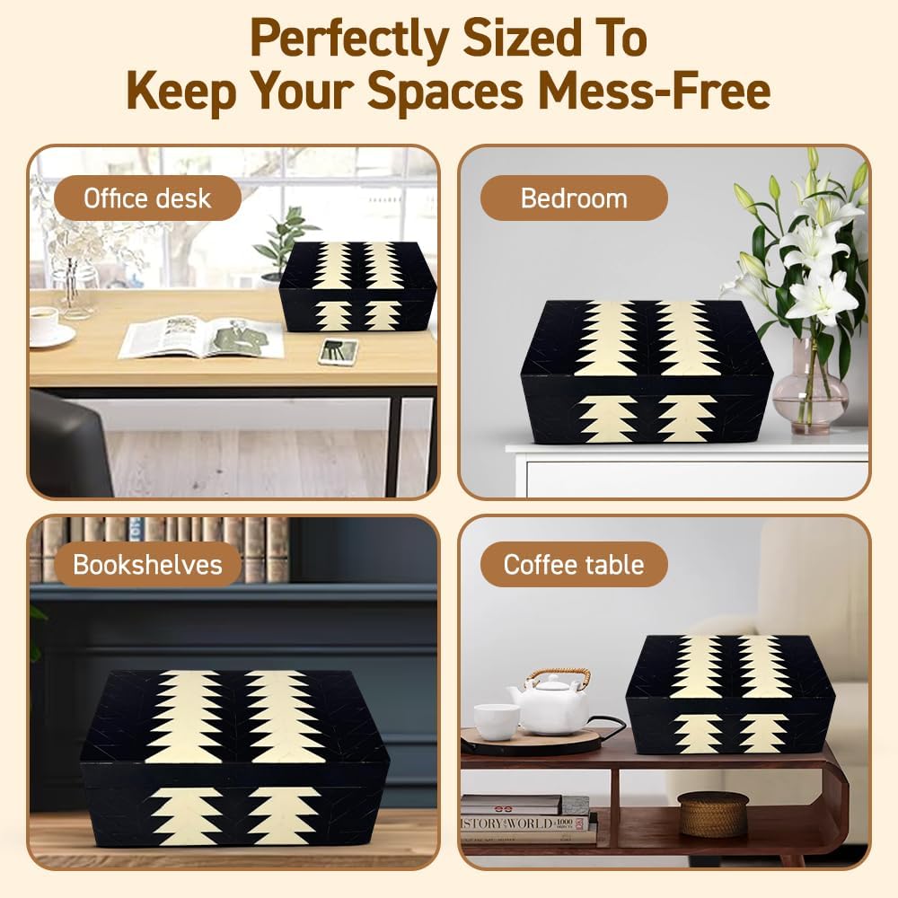 This box stands out because to its beautiful design, whether it's placed in built-ins or used as a catch-all on your entrance console. Its traditional color scheme readily complements existing decor while giving your home a more purposefully planned appearance.