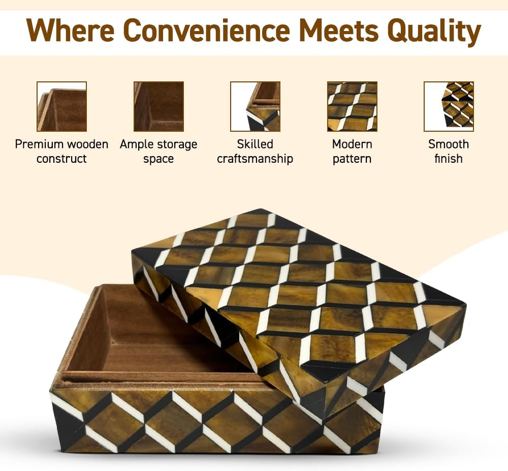 The Ulhas Box is the perfect accent to any home decor. This classic design is meticulously handcrafted from high-quality materials for durability and longevity. Its stylish and timeless design makes it both a practical and beautiful addition to any home.