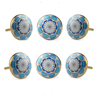 Aster Blue Ceramic Knob ( Set Of 6 )