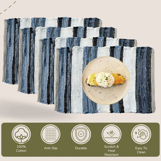 Woven placemats are best for those who always look for something unique and easy to clean. They come in many colors and designs, like grey, black, and more.