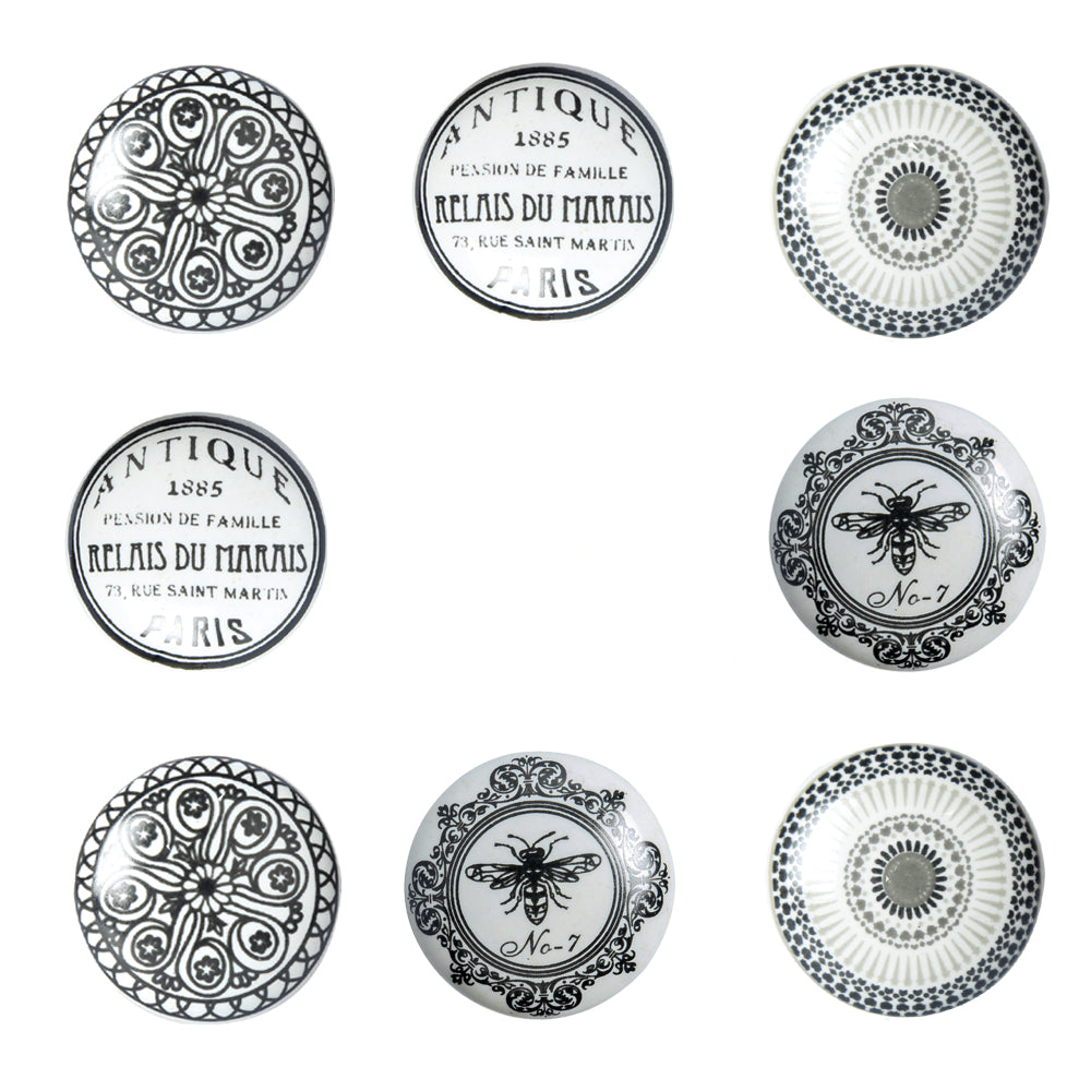 Set Of Eight Mix Design Printed Ceramic Knobs