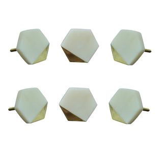 Set Of Six Marble Brass Mother Of Pearl Knobs